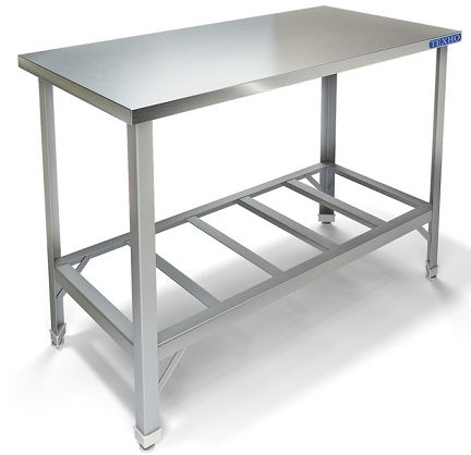 800х800х850мм, Стол производственный без борта, столешница из нержавеющей стали марки AISI 304 толщиной 0,8мм. Каркас разборный из уголка 40х40 нержавеющей стали марки AISI 430 толщиной 2мм. Полка-решетка из нержавеющей стали марки AISI 430 толщиной 2мм. Регулируемые опоры. Стол поставляется в разобранном виде.