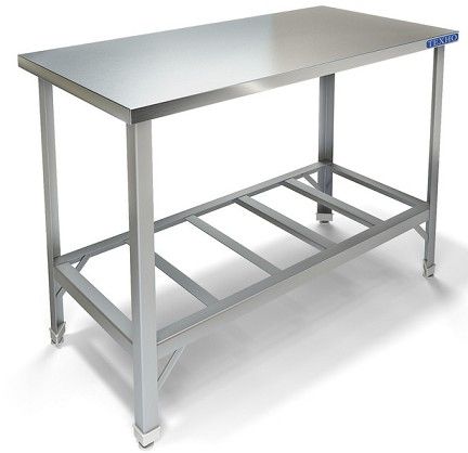 500х800х850мм, Стол производственный без борта, столешница из нержавеющей стали марки AISI 430 толщиной 0,8мм. Каркас разборный из уголка 40х40 толщиной 2мм, покрытого порошковой краской серого цвета. Полка-решетка из крашенного металла толщиной 2мм. Регулируемые опоры. Стол поставляется в разобранном виде.