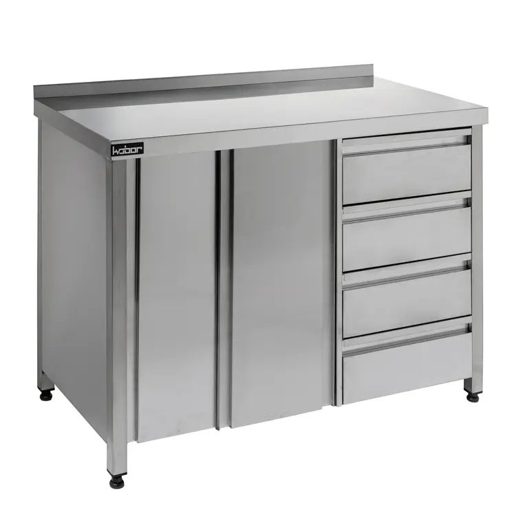 1200х600х870мм, Стол-тумба КОБОР СТБ/1-120/60/К, (Материал столешницы: нержавеющая сталь; Количество дверей, шт: 2; Глубина, мм: 600; Ширина, мм: 1200; Высота, мм: 870; Габариты, мм: 1200х600х870; Стол: стол-тумба; Каркас стола: нержавеющая сталь; Борт стола: есть; Полка стола: сплошная; Ящики стола: есть; Тип дверей: двери-купе; )