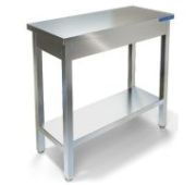 400х700х850мм, Стол-вставка для тепловой линии, столешница из нержавеющей стали марки AISI 304 толщиной 0,8мм. Каркас разборный из трубы 40х40 нержавеющей стали марки AISI 304 толщиной 1,2мм. Полка из нержавеющей стали марки AISI 430 толщиной 0,8мм. Регулируемые опоры. Стол поставляется в разобранном виде.
