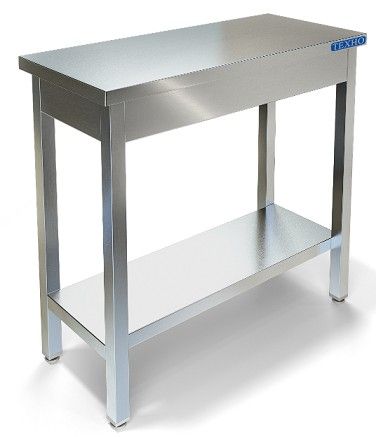 500х900х850мм, Стол-вставка для тепловой линии, столешница из нержавеющей стали марки AISI 304 толщиной 0,8мм. Каркас разборный из трубы 40х40 нержавеющей стали марки AISI 304 толщиной 1,2мм. Полка из нержавеющей стали марки AISI 430 толщиной 0,8мм. Регулируемые опоры. Стол поставляется в разобранном виде.