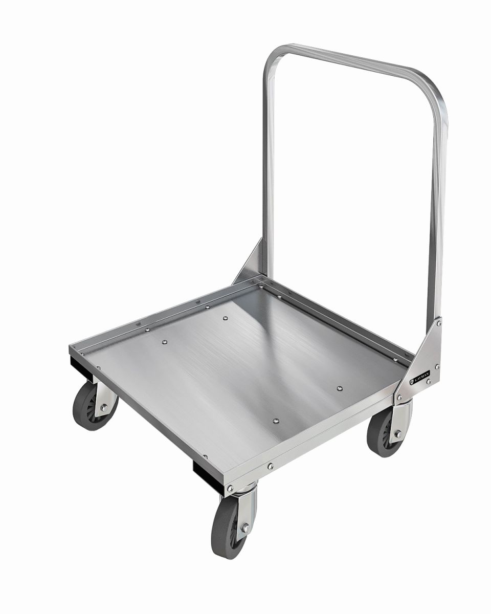 545х538х760мм. Тележка для транспортирования посудомоечных кассет 500х500х100мм, нагрузка 60кг, каркас: нерж. сталь AISI 430, 4 поворотных колеса 2 с тормозом, 2 без.