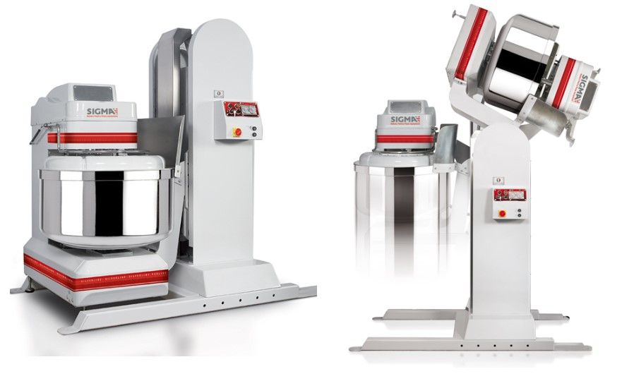2300x1400x2150-2500мм, 5,55+2,2 кВт, 380В, дежа -170л, макс. кол-во теста до 120 кг, мин., электромеханическая панель управления, ключ безопастности для ручного управления, 2 мотора (миксер 5,5 кВт, 2,2 опрокидыватель). Самоопрокидывающийся тестомес с выгрузкой на стол - высота разгрузки 1,2 м