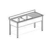 1500х700х900 мм, 2 ванны 400х500 мм, сушка слева, нерж сталь AISI 304