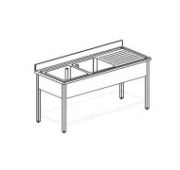 1500х600х900 мм, 1 ванна 500х400 мм, сушка слева, полка, для встраивания посудомоечной машины, нерж сталь AISI 304