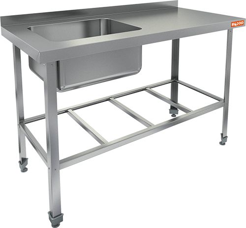 1300х600х870мм, НСО1М-13/6БРЛ ЭЦ стол-моечная ванна,1 секц. (500х400х250) слева, (оцин.угол.)