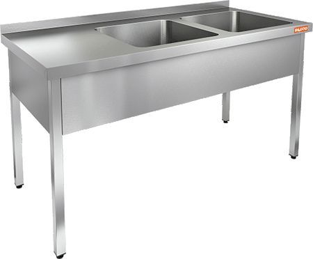 1400х700х870мм, НСО2М-14/7БП стол-моечная ванна, 2 секц. (500х500х300) справа