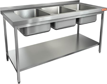 1600х700х870мм, НСО3М-16/7БП ЭН стол-моечная ванна, 3 секц., (400х500х250), (нерж.угол)