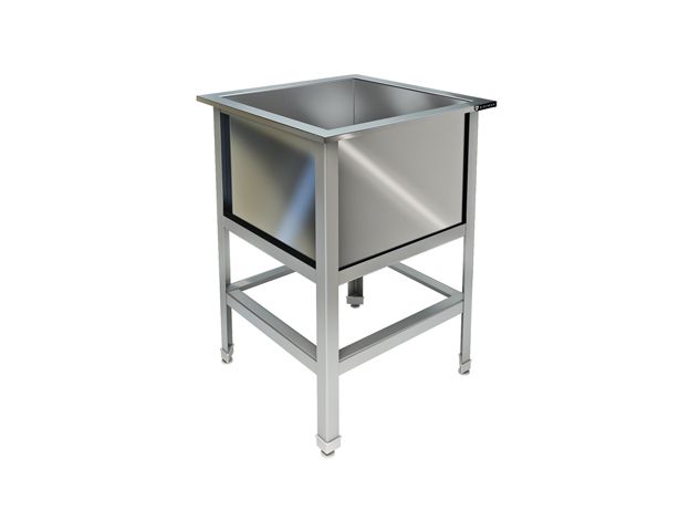 630х600х850, ванна сварная из стали AISI 304 (1 емк.)530х500х400, каркас разборный, уголок из оцинкованного металла, толщиной 1,5 мм, рабочая поверхность из стали AISI 304 , толщиной 0,8 мм