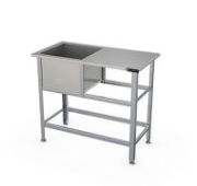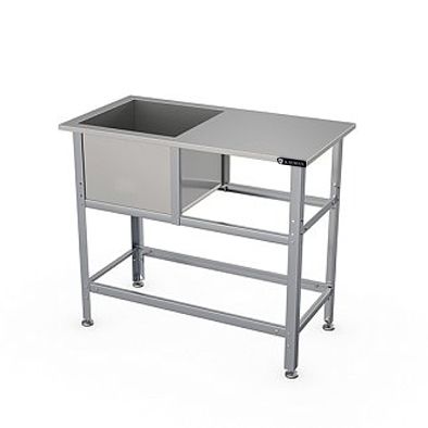 Габариты 1350х700х870мм, внутренние размеры ванны 600х600х450мм, сварная, 1 секция со столом, ширина бортов по периметру ванны 50мм, диаметр сливного отверстия 48мм, нет отверстия под смеситель, ванна AISI430 0,8мм, каркас 1,2мм оцинкованная сталь, профиль уголок 40х40мм, регулировка ножек 20мм.Все кромки ванны и элементов каркаса имеют подгиб (фальцовку). В комплект поставки ванны НЕ входит система разрыва струи.