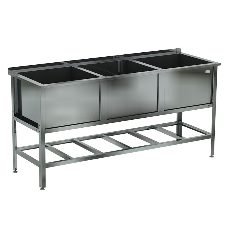 1980х700х870мм, Ванна моечная трехсекционная сварная (ёмкость - нерж. сталь aisi 430, каркас уголок оцинк. сталь, борт), (ёмкость 600х600х450)
