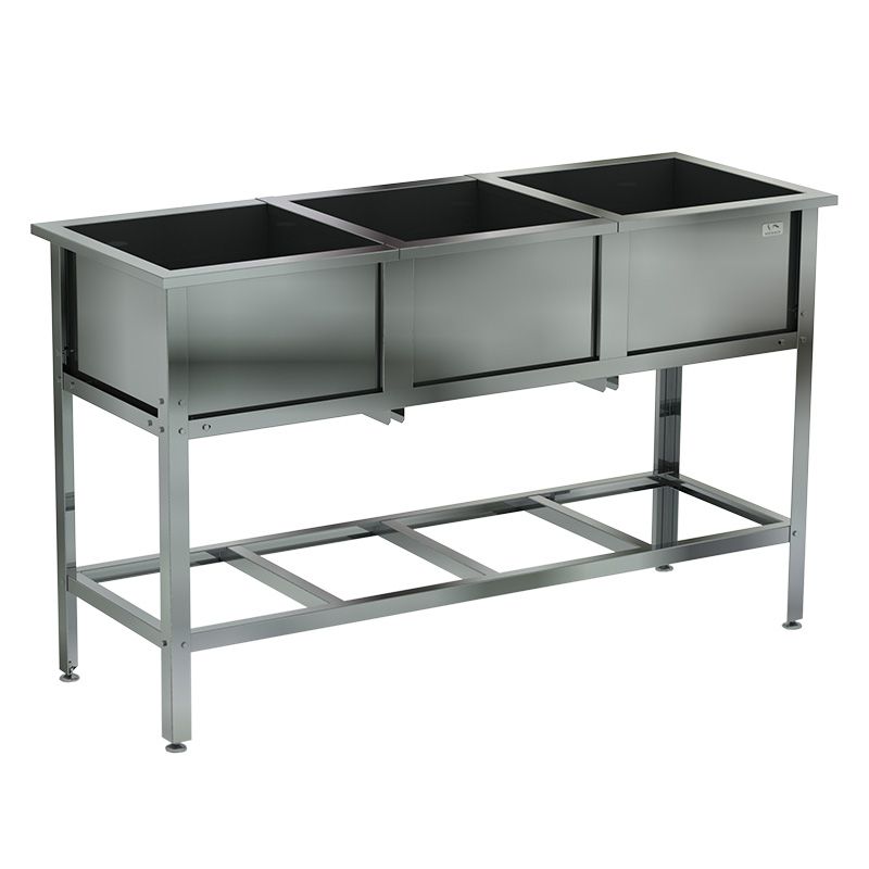 1450х530х870мм, Ванна моечная трехсекционная сварная (ёмкость - нерж. сталь aisi 430, каркас уголок оцинк. сталь), (ёмкость 430х430х300)