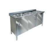 600х600х850, ванна цельнотянутая из стали AISI 304 (1 емк.)400х400х250, каркас сварной, труба 40х40 из стали AISI 430, толщина 1,2 мм, рабочая поверхность из нержавеющей стали AISI 304, толщиной 1 мм, борт плоский плоский 70 мм