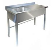 1400х700х850, ванна цельнотянутая из стали AISI 304 (1 емк.)600х500х300, каркас уголок из нержавеющей стали AISI 430 толщиной 1,5 мм, рабочая поверхность из нержавеющей стали AISI 304, толщиной 1 мм, борт плоский 70 мм, обвязка.