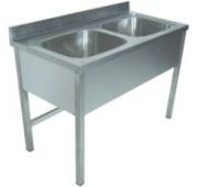 1400х700х870мм, Ванна моечная цельнотянутая двухсекционная (ёмкость - нерж. сталь. aisi 304, каркас уголок оцинк. сталь), (ёмкость 600х500х300)