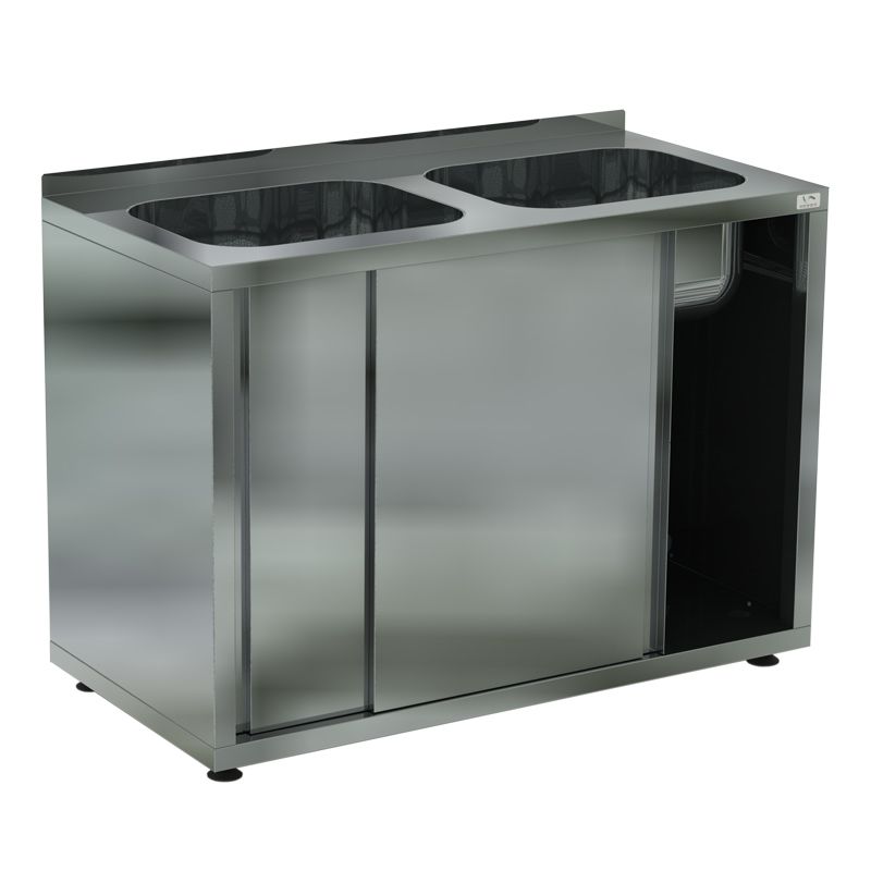 1200х600х870мм, Ванна моечная цельнотянутая закрытая двухсекционная (ёмкость - нерж. сталь. aisi 304, каркас нерж. cталь aisi 430, двери купе, борт), (ёмкость 500х400х250)