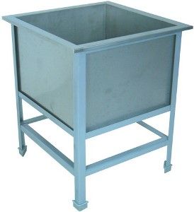 530х530х850мм, Одна сварная емкость размером 430х430х300 из нержавеющей стали марки AISI 304 толщиной 0,8мм. Каркас сварной из уголка 40х40 толщиной 2мм, покрытого порошковой краской серого цвета, внизу по периметру обвязка. Ванна комплектуется выпуском с нержавеющей решеткой и механическим запорным клапаном, диаметр выпуска 90мм, диаметр подключаемого сифона 50мм, регулируемые опоры. На дне ванны ребра (лучи) для жесткости и снижения вибрации. Ванна поставляется в собранном виде.