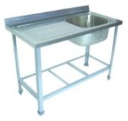 1400х700х850мм, Одна цельнотянутая емкость размером 600х500х300 из нержавеющей стали марки AISI 304 толщиной 1мм, ванна слева, обнижение 2мм, крыло плоское. Объемный пристенный борт высотой 70мм. Каркас сварной из уголка 40х40 толщиной 2мм, покрытого порошковой краской серого цвета, внизу по периметру обвязка. Ванна комплектуется выпуском с нержавеющей решеткой и механическим запорным клапаном, диаметр выпуска 90мм, диаметр подключаемого сифона 50мм, перелив, регулируемые опоры. На дно ванны нанесена виброшумоизоляция. Ванна поставляется в собранном виде.