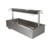 1120х1015х880 20мм, 0,9кВт, 220В, t внутри витрины +2…+10 C, объем витрины 0,52м3, площадь выкладки 2,28м2. Хладагент - R404А. Тип охлаждения динамический. Предназначена для кратковременного хранения, демонстрации и раздачи холодных напитков, салатов, кисломолочных продуктов и других блюд, требующих хранения в охлажденном состоянии. Конструкция сборная, бескаркасная. Столешница выполнена из AISI430 и усилена листом ЛДСП16 мм. На столешнице смонтирована холодильная витрина. Боковые стенки и двери-купе со стороны обслуживающего персонала выполнены из стеклопакетов. Самозакрывающиеся дверцы со стороны покупателя изготовлены из оргстекла. Внутренняя часть витрины подсвечивается с помощью двух светильников. 3 перфорированные полки из нержавеющей стали. Ножки модуля регулируют высоту модуля в пределах 20 мм. В комплект модуля входит направляющая для подносов (1120х315 мм), выполненная из нержавеющей стали ( сплошная поверхность с выпуклыми формовками).