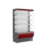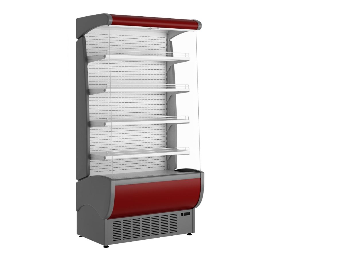 991х697х2070, t режим +1…+10 C. Витрина холодильная,со встроенным агрегатом, гнутое стекло, 4 металлических полки, полезный объемвыкладки— 0,51 м3,охлаждаемая площадь поддонов для выкладки продуктов 1,84 м2, динамическое охлаждение, оттайка ТЭН, потр. эл.энергии в сутки —13 кВт, R404A, цвет корпуса —белый, фриз и щиток — красный, 14,4Вт, 220В.