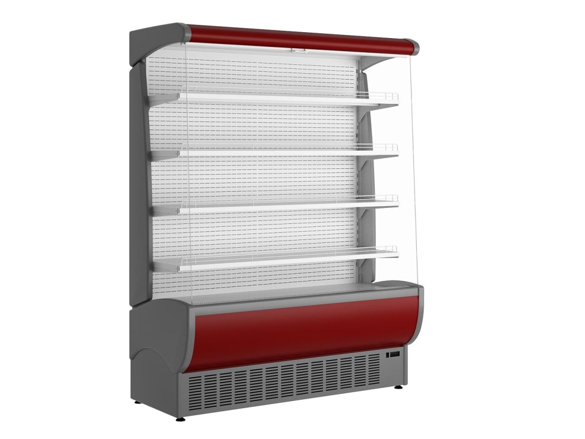 1591х697х2070, t режим +1…+10 C. Витрина холодильная,со встроенным агрегатом, гнутое стекло, 4 металлических полки, полезный объемвыкладки— 0,85 м3,охлаждаемая площадь поддонов для выкладки продуктов 3 м2, динамическое охлаждение, оттайка ТЭН, потр. эл.энергии в сутки —18 кВт, R404A, цвет корпуса —белый, фриз и щиток — красный, 14,4Вт, 220В.